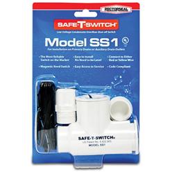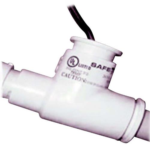 RectorSeal® Safe-T-Switch SS1™ Detects clogged A/C condensate drains and shuts off the system to prevent water damage to floors, walls and ceilings. Can be installed horizontally or vertically, inline or on the primary pan’s auxiliary drain outlet by using the included ¾” adapter, bushing and cap. Can be installed on a sloping line and does not need to be level or plumb.