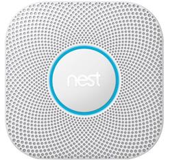 Help safeguard your home with the white Protect Wired Smoke and Carbon Monoxide Alarm from Nest. This alarm features a wired installation and it wirelessly interacts with your Android and iOS smart devices using the free Nest app. Wireless communication is achieved thanks to its built-in Wi-Fi and Bluetooth connectivity. The Nest Protect is designed to detect fast-burning fires, smoldering fires, and carbon monoxide. It produces an audible alert when action is required, and it can be conveniently silenced from your smart devices.