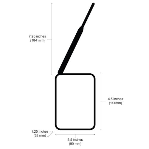 HWD: 4.5" x 3.5" x 1.25" , Antenna: 7.25"