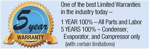 Manufacturer's Warranty: 5-Year Limited Warranty including 1-Year Parts & Labor & 5 Years on the Sealed System (Condenser , Evaporator and Compressor).