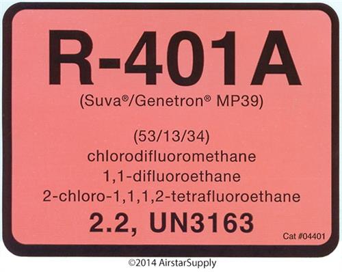 R-401A / R401A (Suva / Genetron MP39) Label # 04401